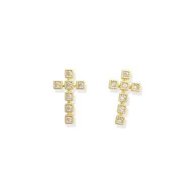 Cubic Zirconia - 3 size stones Gold plated Titanium post Nickel free 1/2"L x .25"W Clear with Gold