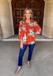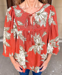 Rich in detail and free-spirited style, this floral peasant top in rustic tones brings effortless charm to any outfit. The split V-neck is accented with tasseled self-ties for a boho-inspired touch, while the 3/4 peasant sleeves with elastic cuffs add soft volume and comfort. Made from a breathable rayon and nylon blend, its relaxed fit drapes beautifully for all-day ease. Ideal for pairing with distressed denim or floaty skirts.