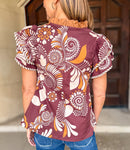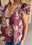 Paloma Printed Contrast Flutter Top FINAL SALE