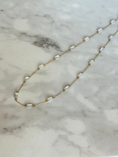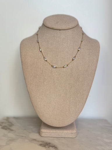 Stainless steel iridescent oblong stones gold mini beads Gold chain 16"-19" length clasp closure