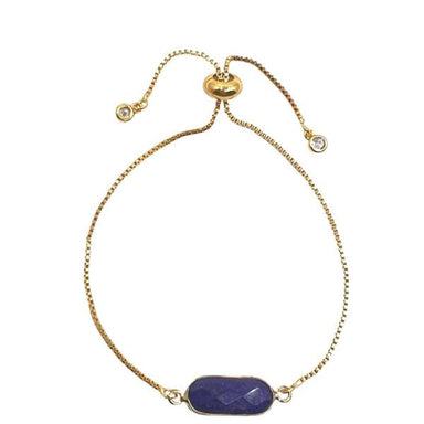 Gold plated brass Lapis bezel stone - 15mm x 8mm Pull chain design - fits most wrists