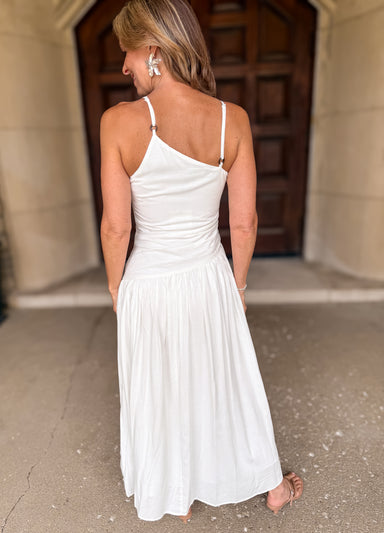 Effortlessly refined, this ivory maxi dress blends soft structure with flowing elegance. Made from a breathable linen-cotton blend, it features an ...