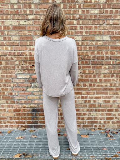Relax in total comfort with the ultra-soft Lucy Brushed Pant Set. The V-neck top features drop shoulders, long sleeves, and banded cuffs for a cozy...