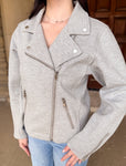 Adriana Knit Moto Jacket is the perfect blend of style and comfort. Crafted from a soft knit fabric, this classic moto jacket offers the cozy feel of your favorite sweater while maintaining a cool, edgy look.