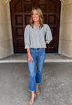 The Leesa Striped Band Collar Top is a perfect blend of classic and chic style, making it an ideal choice for both work and after-hours outings. Its versatile design pairs beautifully with jeans or dress pants, ensuring you look polished in any setting.