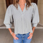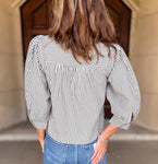 Available in a timeless black color, the Leesa Striped Band Collar Top is a wardrobe essential that combines style and functionality effortlessly.