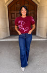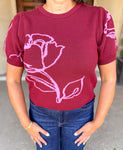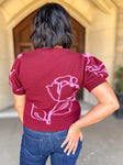 Wrap yourself in cozy sophistication with this Macie Floral Puff Sleeve Sweater in a deep burgundy hue. Designed with short puff sleeves and a ribbed neckline, cuffs, and hem, it blends timeless femininity with a touch of modern charm. The soft knit fabric offers comfort and structure in equal measure. Delicate floral detailing lends just the right amount of whimsy, making it perfect for dressing up denim or layering over a midi skirt.