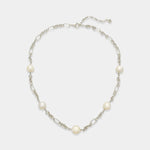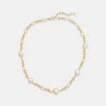 Textured alternating chain necklace with genuine freshwater pearls. The perfect amount of chain and pearl for a fashionable and refined look.14k gold / rhodium plated, triple plated
