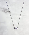 Chevron down icon Chevron down icon Rectangle CZ Necklace No reviews Sale $28.00 | / Gold - $28.00 Silver - $28.00 Color Gold Silver Add to cart Spinner icon IN STOCK - ONLY 2 LEFT! READY TO SHIP Notify me when back in stock Email address Email me when available Gold dipped brass Cubic zirconia pendant 10mm W x 5mm H 15.5 - 17.5" length
