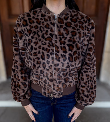 Make a bold statement in the plush Asher Leopard Fur Jacket. Designed with a front zipper closure, it features long balloon sleeves and ribbed knit...
