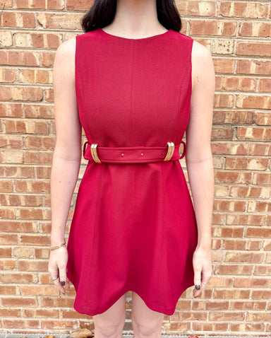 Sleek and sophisticated, the Audra Gold Belt Loop Dress features a classic round neckline and a figure-flattering A-line silhouette. The gold loop ...