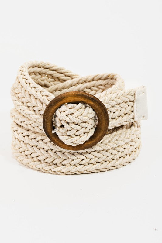 Woven Vegan Leather Belt width: 1" Buckle length: 2" Polished gold buckle finish Belt length: 39" Adjustable One Size