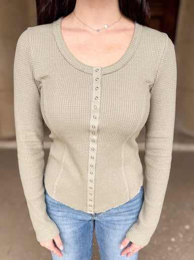 Casual and laid-back, this henley top features a scoop neckline with a snap-front closure for a touch of utility style. Designed in a slim fit with...