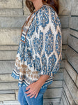 Kit Printed Tie Peasant Top
