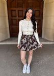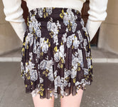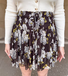 Romantic and versatile, this smocked skort features a delicate floral print in soft white and yellow tones set against a dark background for a bold yet feminine look. The wide smocked waistband with lace-up front detail offers both style and comfort, while tiered ruffle layers add playful movement. Designed with a built-in shorts lining for coverage and ease, this skort feels effortless all day. It’s perfect for everything from casual outings to date nights.