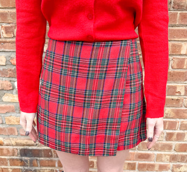 Holiday Collection - FINAL SALE Playful and preppy, this Sherry Plaid Wrap Skort features a chic wrap-front design with a hidden side zipper for a...