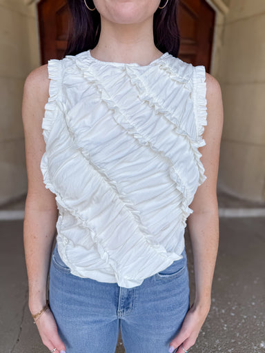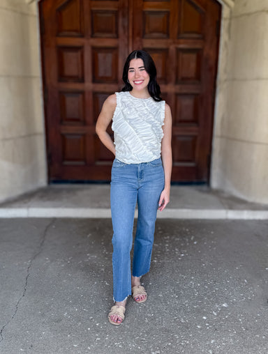 Sweet, airy, and full of texture. This white crochet top features a flattering square neckline, short bubble sleeves, and a smocked back for a comf...
