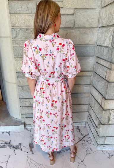 Introducing the Thea Floral Puff Tie Dress, a stunning blend of elegance and comfort. This midi-length masterpiece features a delightful floral pri...