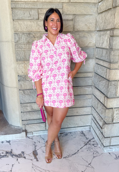 The Wynona Printed Puff Shift Dress is a stylish addition to any wardrobe. Crafted from 100% cotton, this dress offers both comfort and breathabili...