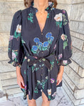 Babette Floral Gold Button Tie Dress — Emilia Gray