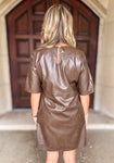 Sleek and modern with a hint of retro charm, this faux leather A-line dress features short sleeves, a round neckline, and convenient side pockets. A back keyhole with button closure adds a subtle finishing touch, while the fully lined design ensures a smooth, comfortable fit. Bring a little edge to your everyday with the Elsa Leather Short Sleeve Dress.