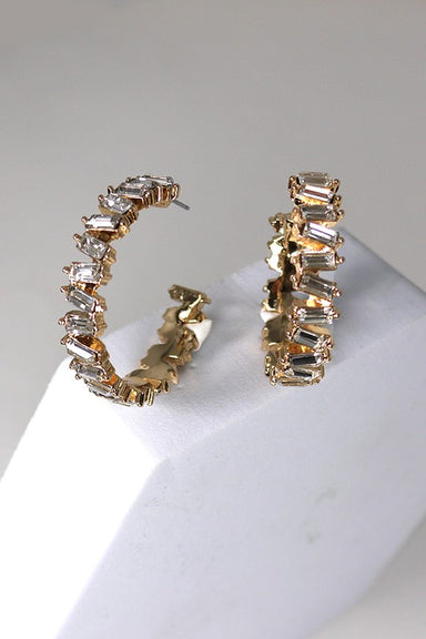 Add some glam to your outfit with our zig zag pattern baguette hoops. 1.5" Hypoallergenic surgical steel post Gold plated