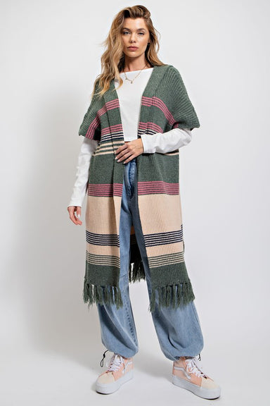 Bring a pop of playful charm to your cozy days with this wide-striped textured hoodie sweater! Featuring a soft drawstring hood and roomy kangaroo ...