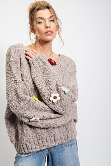 Charming and cozy, this chunky knit cardigan features floral embroidery for a touch of whimsy. Designed with a V-neckline and button-front closure,...