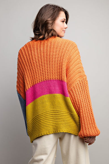 Add a fun pop of color to your wardrobe with this cozy knit sweater featuring playful multicolor wavy stripes. Designed with a classic crew necklin...