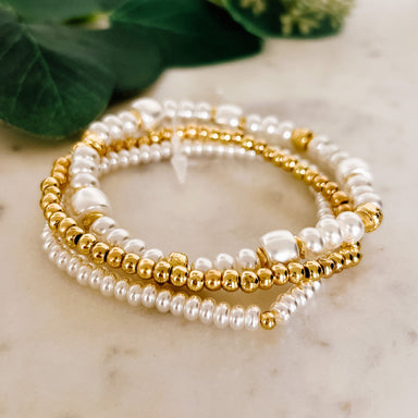 Gold and Pearl multi beads 5 piece set elastic stretch one size fits all