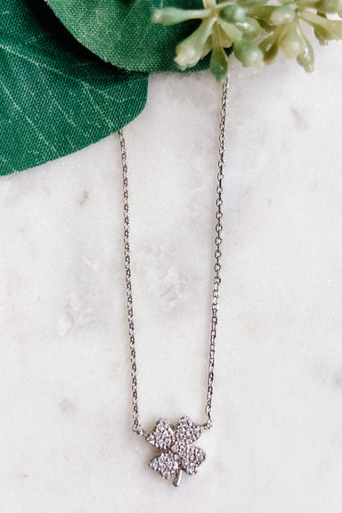 Cubic zirconia 4 leaf clover 10mm pendant 15-17" Adjustable chain length Clasp closure Gold/Silver plated brass