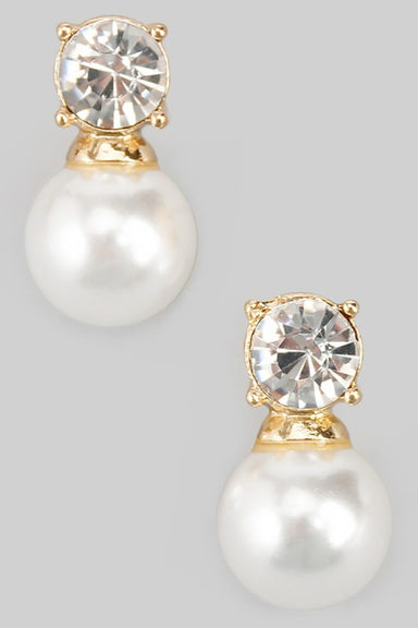 CZ and pearl stud earrings Gold-dipped brass cubic zirconia and faux pearl 1/2"L Nickel and lead compliant Post