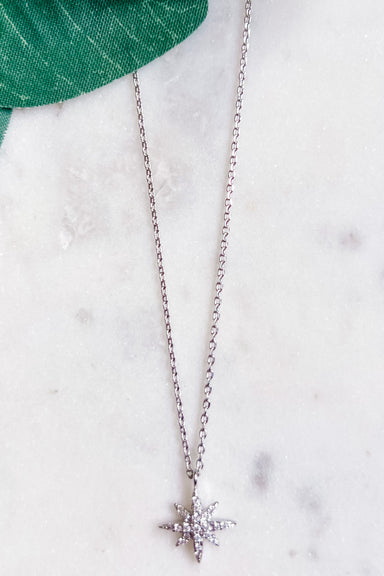 Cubic zirconia starburst .5" pendant 15-17" Adjustable chain length Clasp closure Gold/Silver plated brass