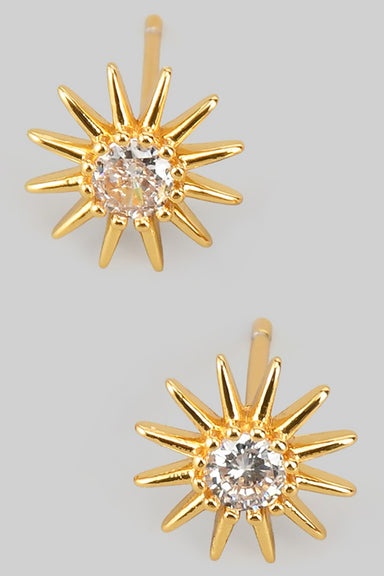 Brighten your look with these dainty starburst stud earrings featuring sparkling cubic zirconia stones set in a radiant design. Measuring 1/2 inc...