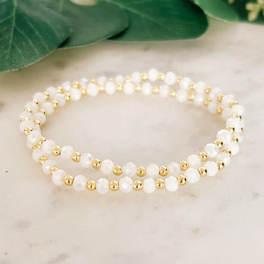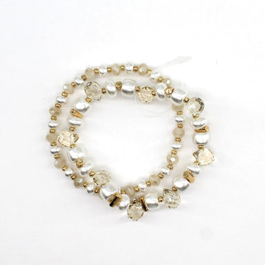 Two piece set Gold, pearl, glass mixed size beads Elastic stretch One size