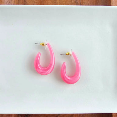 Add a fun twist to your hoop collection with our Magnolia Hoops in Hibiscus Pink! Featuring sleek gold hoops adorned with vibrant resin flowers, th...