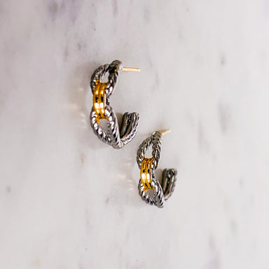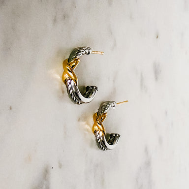 The Julie Hoops Add a splash of vintage-inspired charm to your jewelry box with our Julie Hoops. These earrings feature a bold, curved silhouette c...