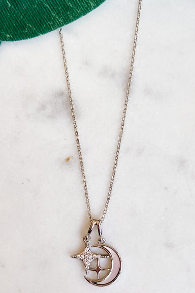 Cubic zirconia and Mother of Pearl .75"L x pendant 15-17" Adjustable chain length Clasp closure Gold/Silver plated brass