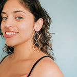Bold antique-gold dangle earrings inspired by retro 1960s style. With two stacked ogee shapes, these mid-century earrings bring a sculptural, vintage-inspired silhouette to your look. Lightweight yet eye-catching, they’re the perfect pair of statement earrings for boho style lovers and anyone drawn to timeless, artistic design. They’re finished with 14k gold-filled, nickel-free earwires for lasting comfort.