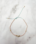 Since ancient times, pearls have been precious. The pearl meaning is centered around purity, balance, and inner wisdom. We've combined a solitare freshwater pearl with colored Miyuki beads. These tiny precious beads are made in Japan and known to be of the highest quality. The unique thread and knot at the back allows you to adjust the bracelet to any size and mix it into any stack.