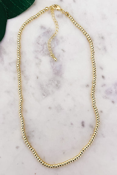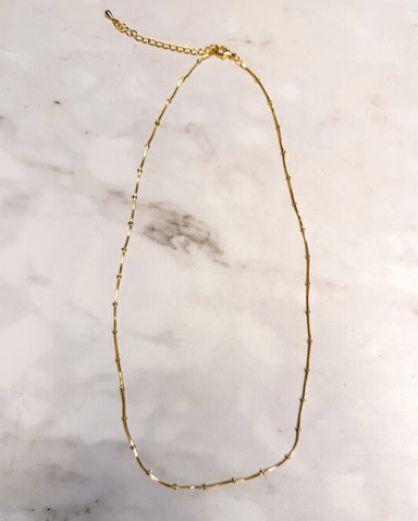 A dainty chain necklace accented with saucer-shaped beads all around that steals the spotlight with its gleam and minimalism. Material: 14k gold ...