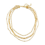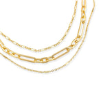 Explore our triple layer necklace, where delicate dainty chains intertwine with an alt chain and feature dainty chain with bars adorned with a touch of gold. Wear each layer individually for a minimalist look or combine them to create a chic statement piece. Versatile and elegant, this necklace adds a touch of sophistication to any ensemble.