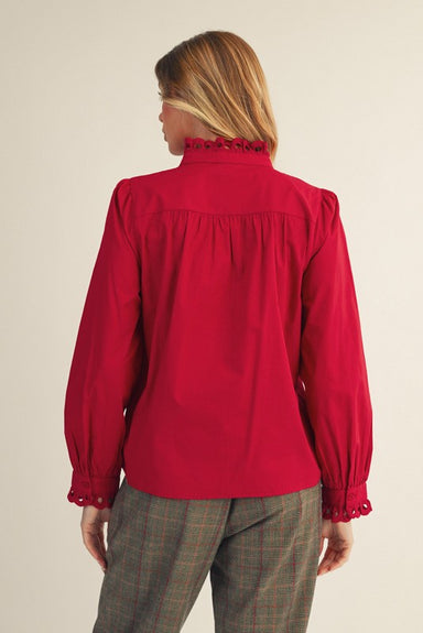 A timeless silhouette with feminine detail, this cotton poplin blouse features delicate eyelet trim, long puff sleeves with button cuffs, and a but...