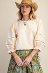 The unique Swiss Dot contrast sleeves and elastic ruffle cuffs create a playful yet sophisticated look, perfect for any occasion. With a relaxed silhouette and straight hem, this sweatshirt offers both comfort and versatility.
