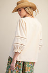 Elevate your wardrobe with the Bea Contrast Sleeve Sweatshirt. Crafted from soft, washed terry fabric, this stylish piece features a classic crew neckline and 3/4 balloon sleeves that add a touch of elegance.