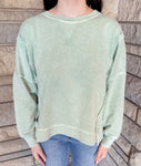 Introducing the Bianca Washed Raw Edge Sweatshirt, where comfort meets contemporary style. This crew neck sweatshirt features a washed finish, giving it a soft, lived-in feel that you'll love. Designed with drop shoulders and long sleeves, it offers a relaxed fit that drapes effortlessly. The raw edge seam details add an edgy touch, while the hi-lo split hem enhances its modern silhouette. Complete with ribbed collar, cuffs, and hem, the Bianca Washed Raw Edge Sweatshirt is a versatile staple for any wardrobe. Hand wash for lasting quality.