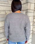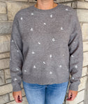 A softly feminine sweater that blends comfort and charm with timeless elegance. This sweater features delicate floral embroidery for a touch of charm. Designed with a classic crewneck and a relaxed fit for cozy, effortless style. Features long sleeves with drop shoulders and ribbed detailing at the neckline, cuffs, and hem for a polished finish.