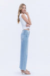 The light wash is ideal for the warmer months, while the wide leg opening is a favorite, the raw hem adds a playful touch. Crafted from a comfortable stretch fabric, these jeans ensure a clean finish with no distressing, making them versatile for any occasion.