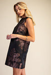 Introducing the Rosalie Floral Brocade Dress, a stunning addition to your wardrobe. This elegant dress features a beautiful floral brocade design that shimmers, making it perfect for special occasions. Featuring a sleeveless design, round neckline and a convenient back zipper, it offers both style and comfort. Available in a rich brown color, the Rosalie Floral Brocade Dress is a timeless piece that will elevate any outfit.