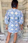 The Wynona Printed Puff Shift Dress is a stylish addition to any wardrobe. Crafted from 100% cotton, this dress offers both comfort and breathability, making it perfect for warm days.